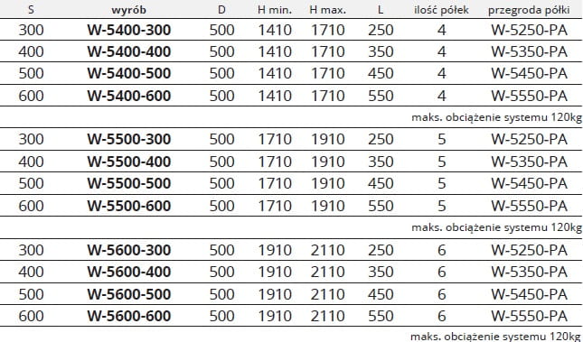 - uniwersalna konstrukcja umożliwiająca stosowanie koszy i półek z pełnym dnem