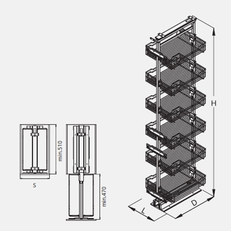 - uniwersalna konstrukcja umożliwiająca stosowanie koszy i półek z pełnym dnem